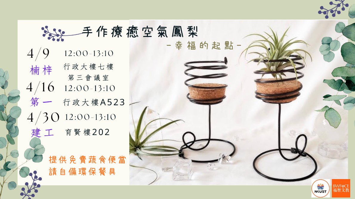 時間:115年04月09日(四)中午12:00~13:10 / 地點:楠梓校區/行政大樓7樓第三會議室